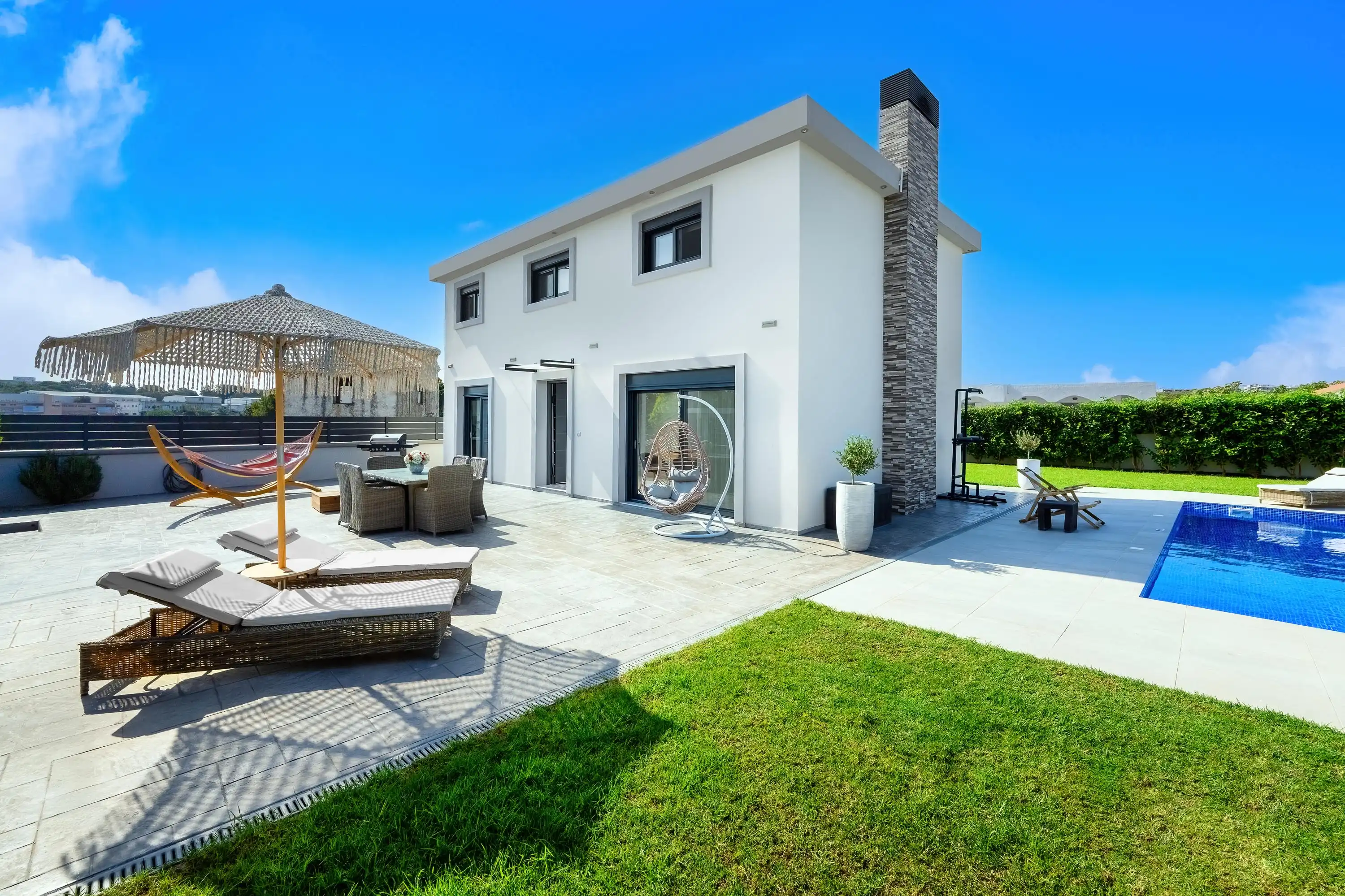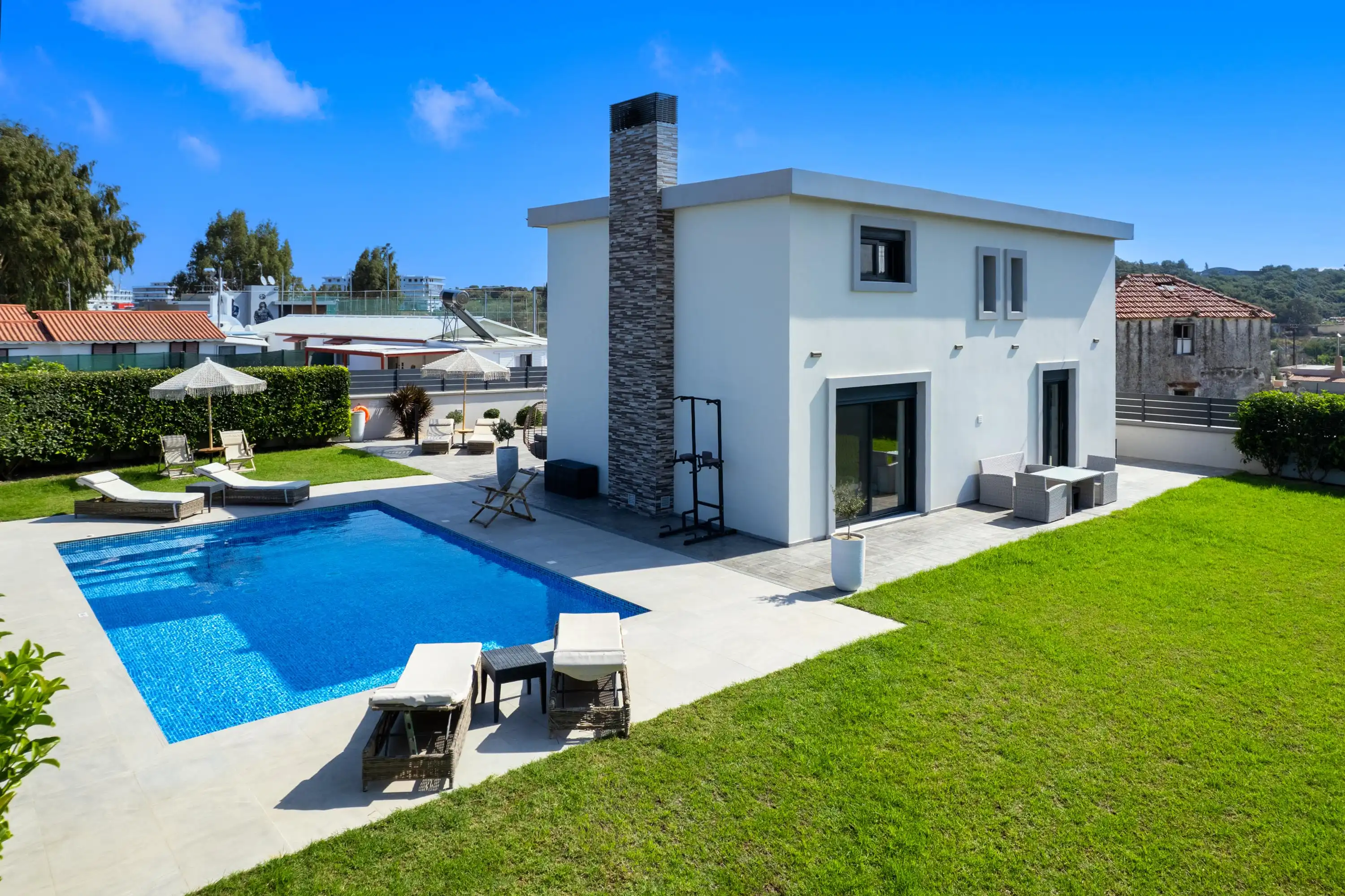 A breathtaking 150sqm sanctuary in Rhodes city featuring a private pool, jacuzzi, and modern luxury design.